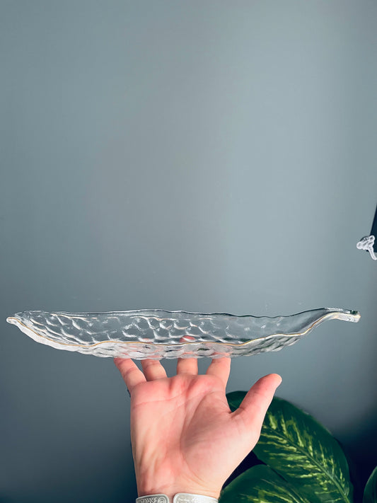 طبق تقديم زجاج ورق شجر شفاف حرف دهبيcode29-551
