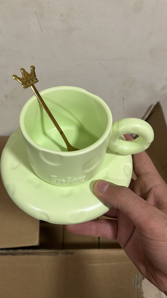 Cute Light grey mug مج بورسلين طبق و معلقه. (رمادى)BT