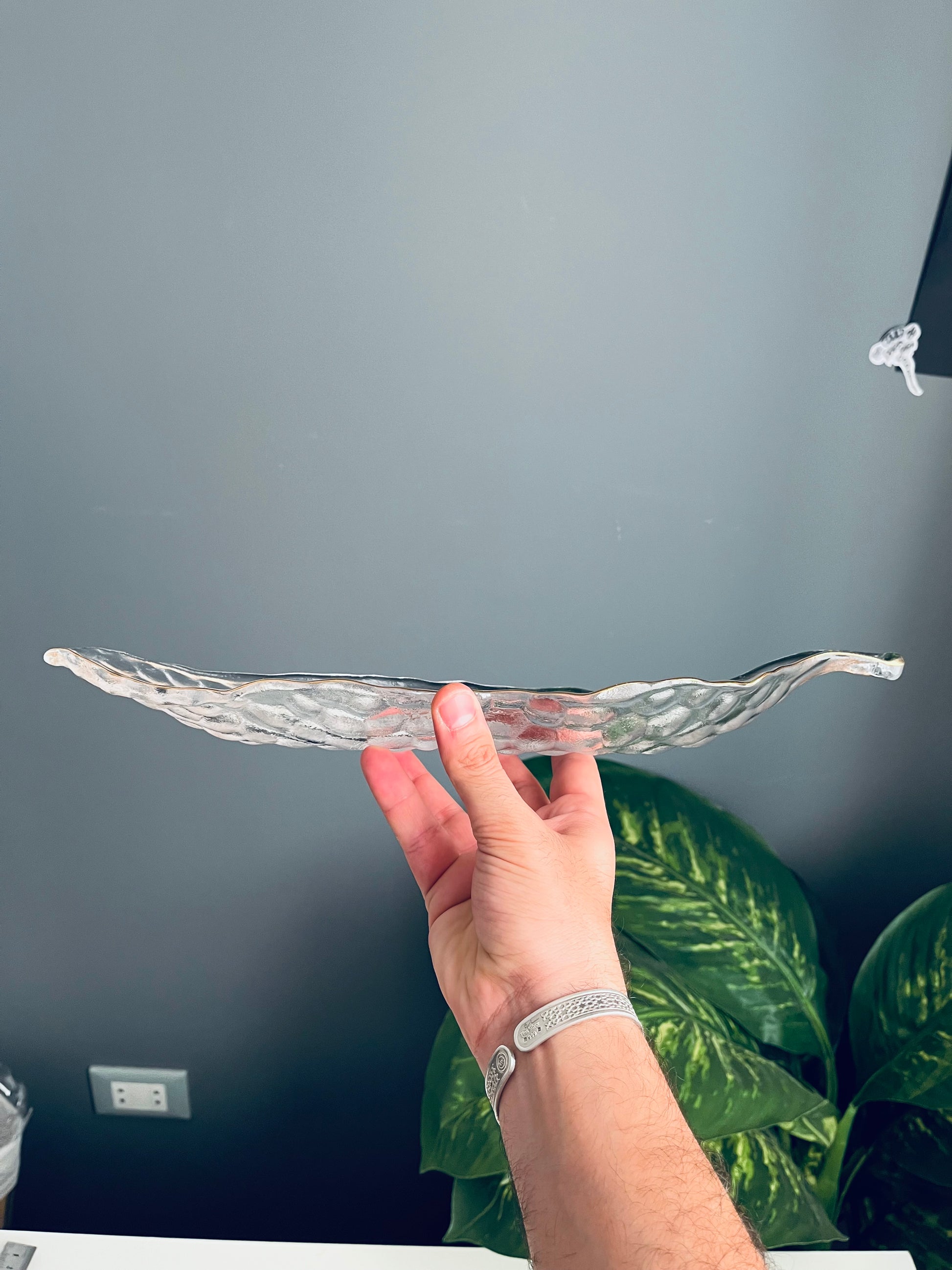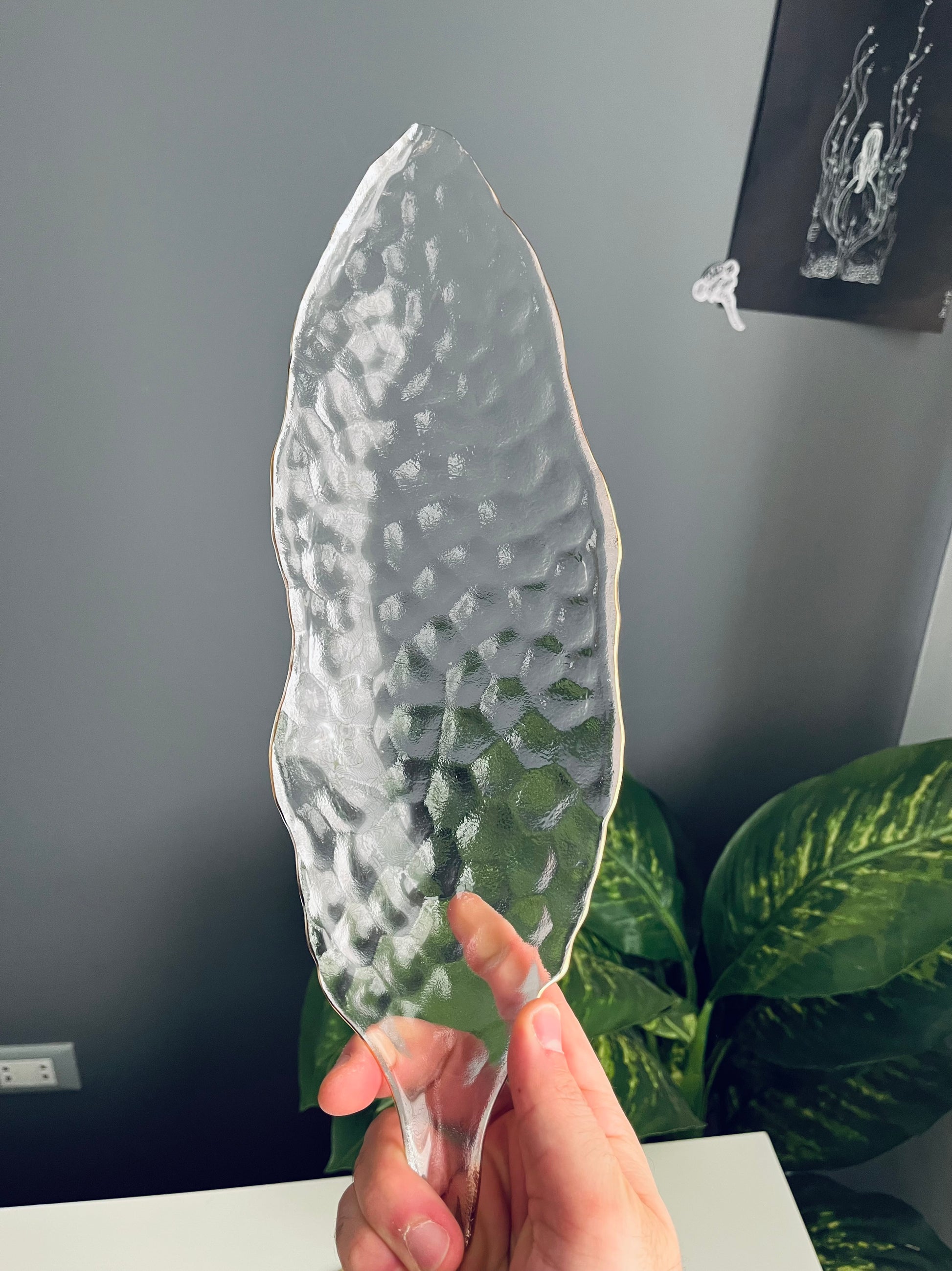 طبق تقديم زجاج ورق شجر شفاف حرف دهبيcode29-551