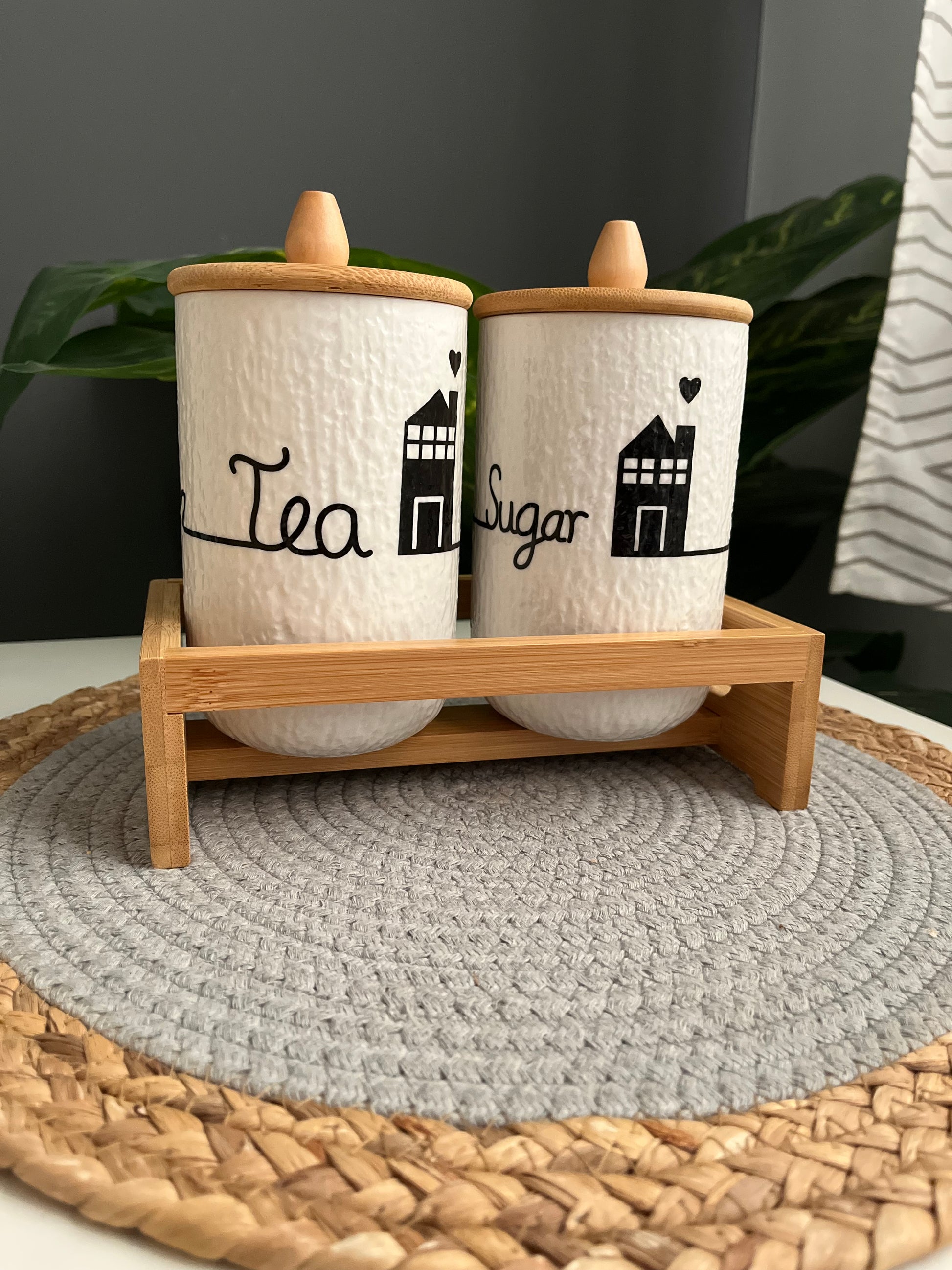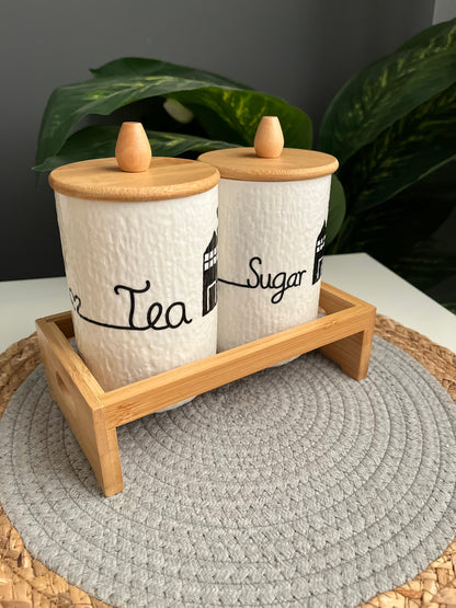 طقم شاى و سكر بورسلين +قاعده خشب