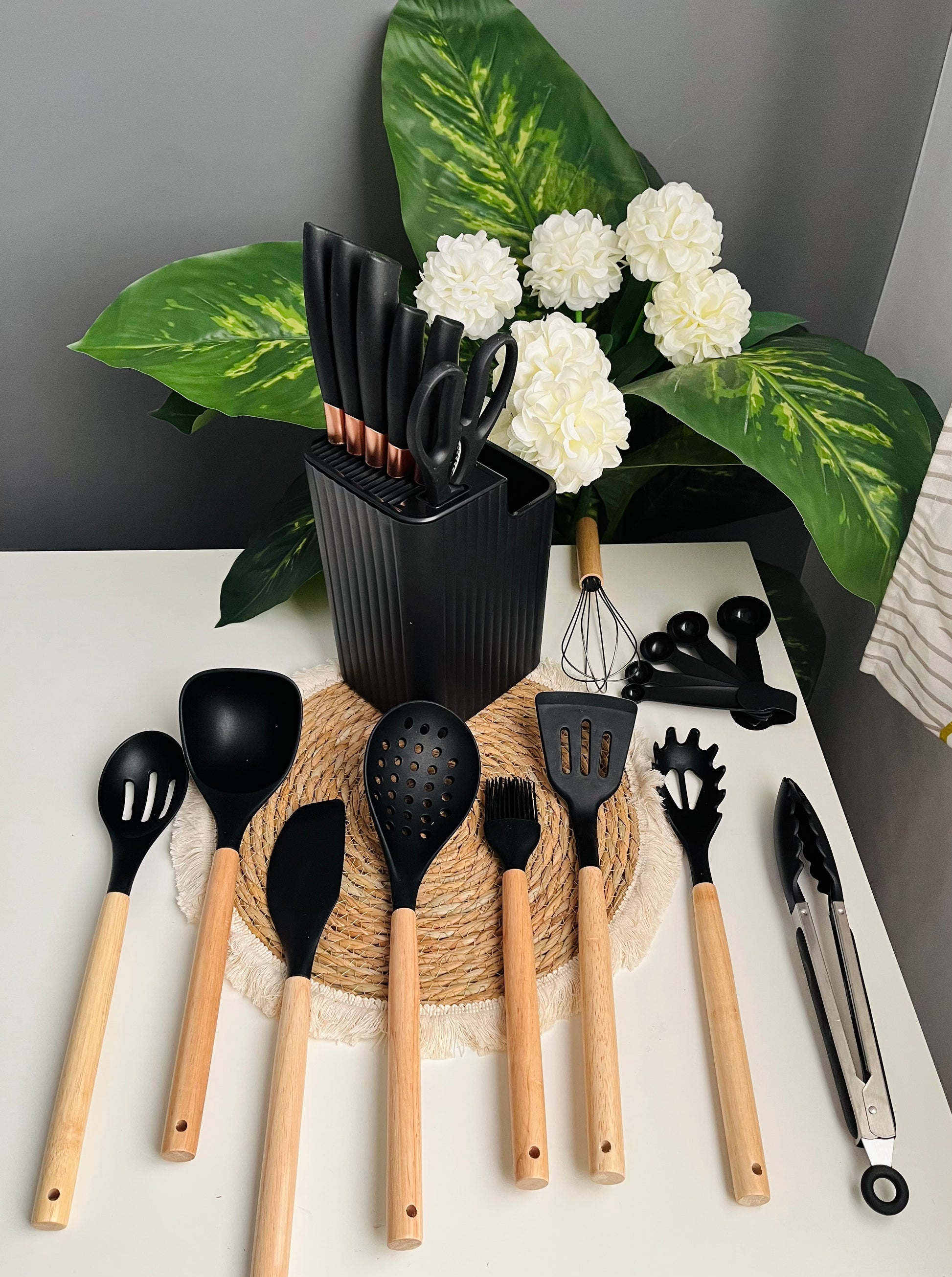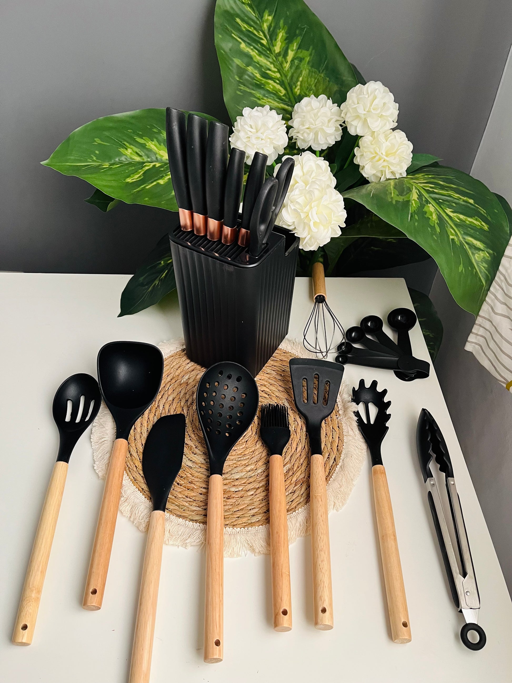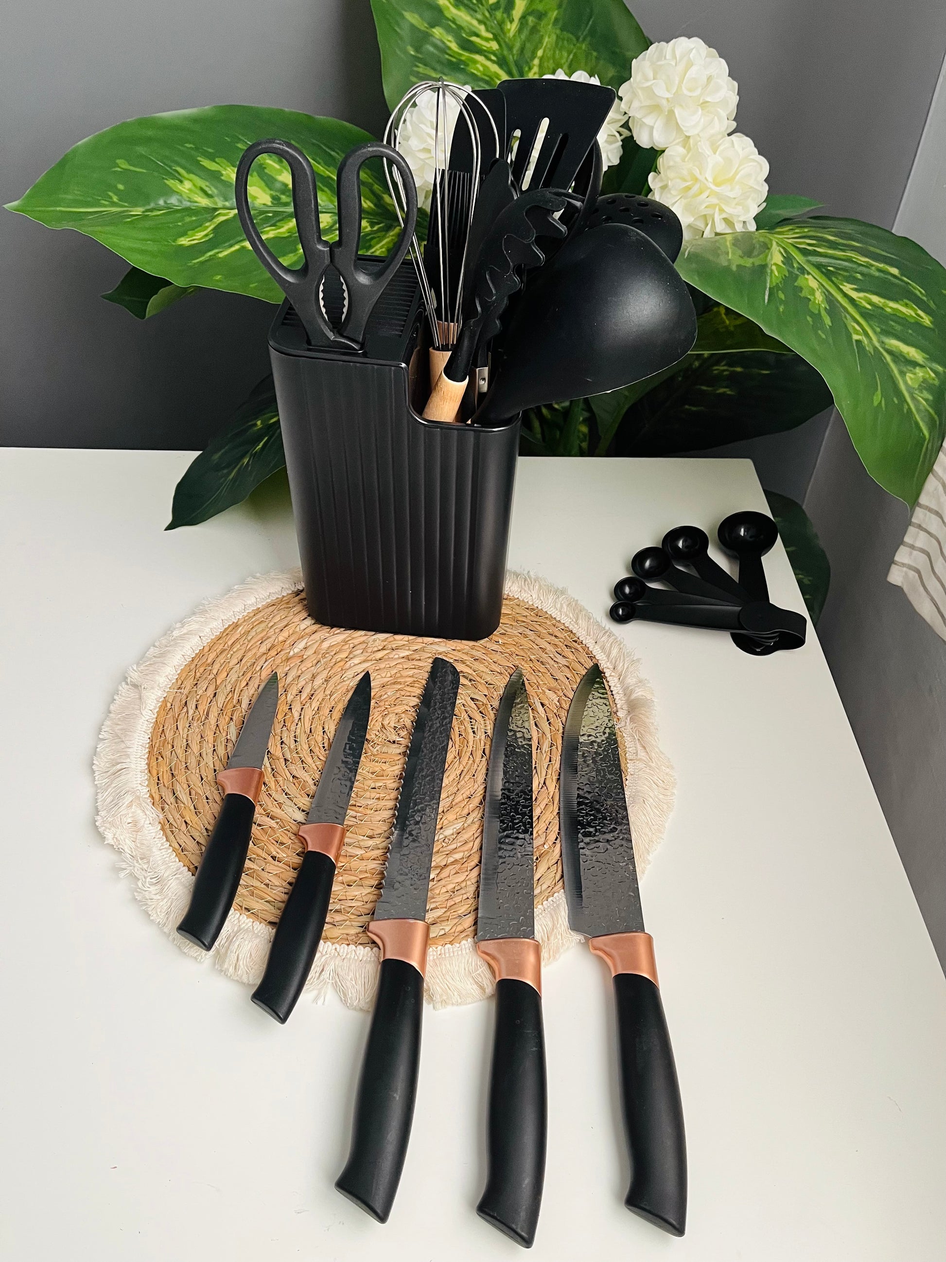 طقم توزيع (أسود)21 قطعه مع طقم سكاكين (code 594)