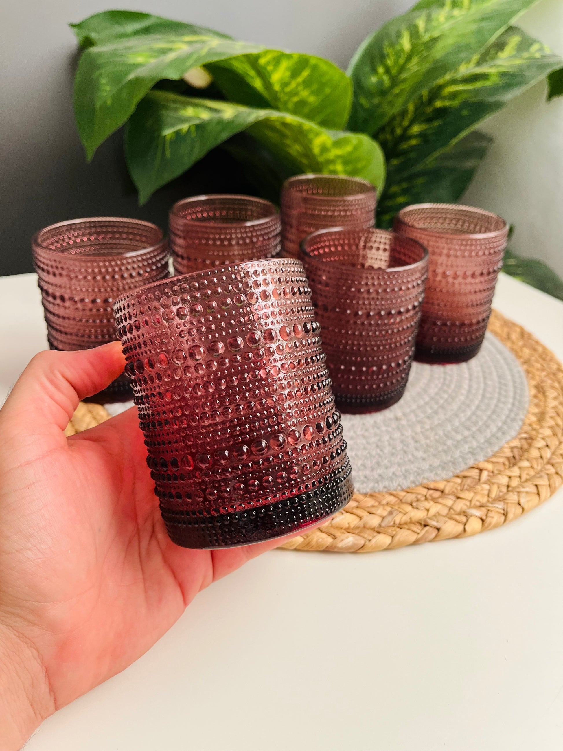 (Code208) طقم 6 كوبيات (وسط) ( أحمر منقرش)