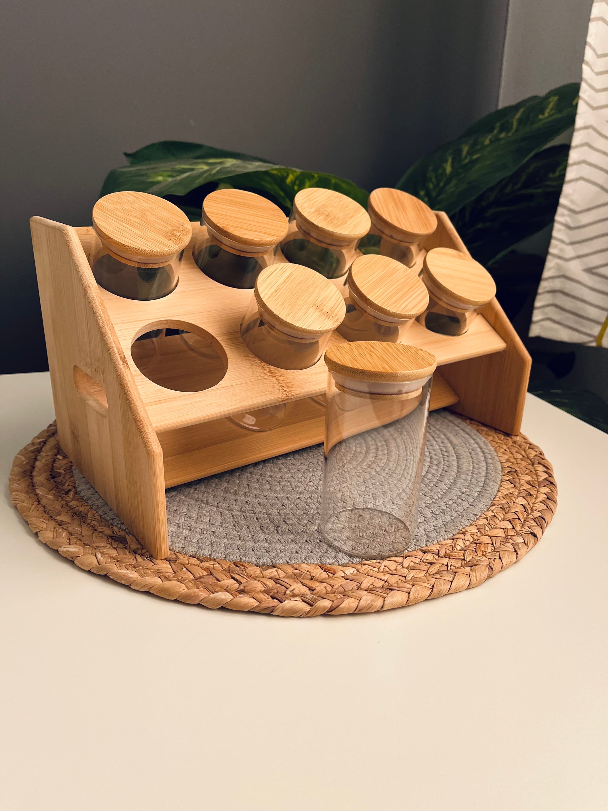 مدورSet of 8 glass jars +bamboo holder(200ml)