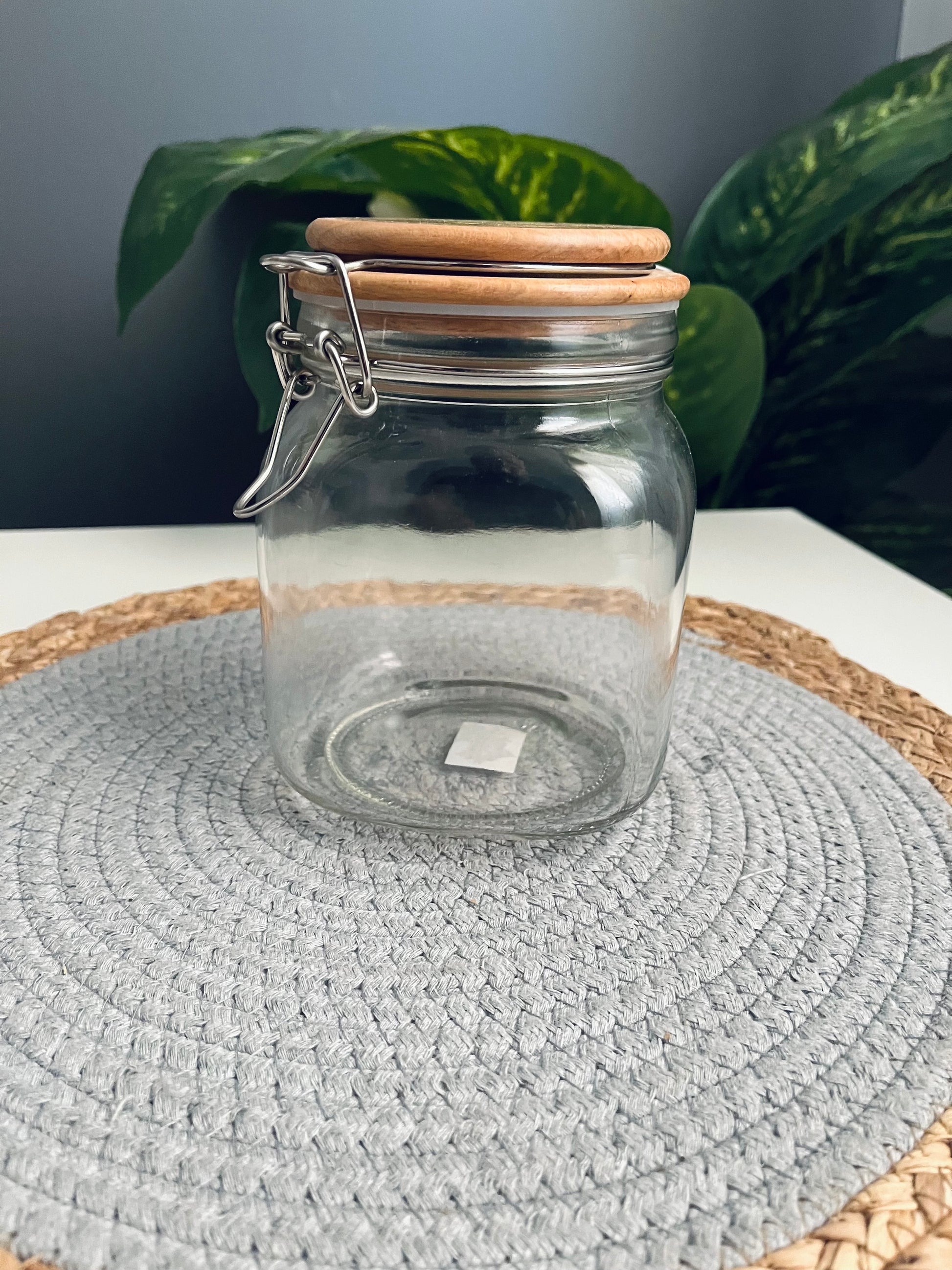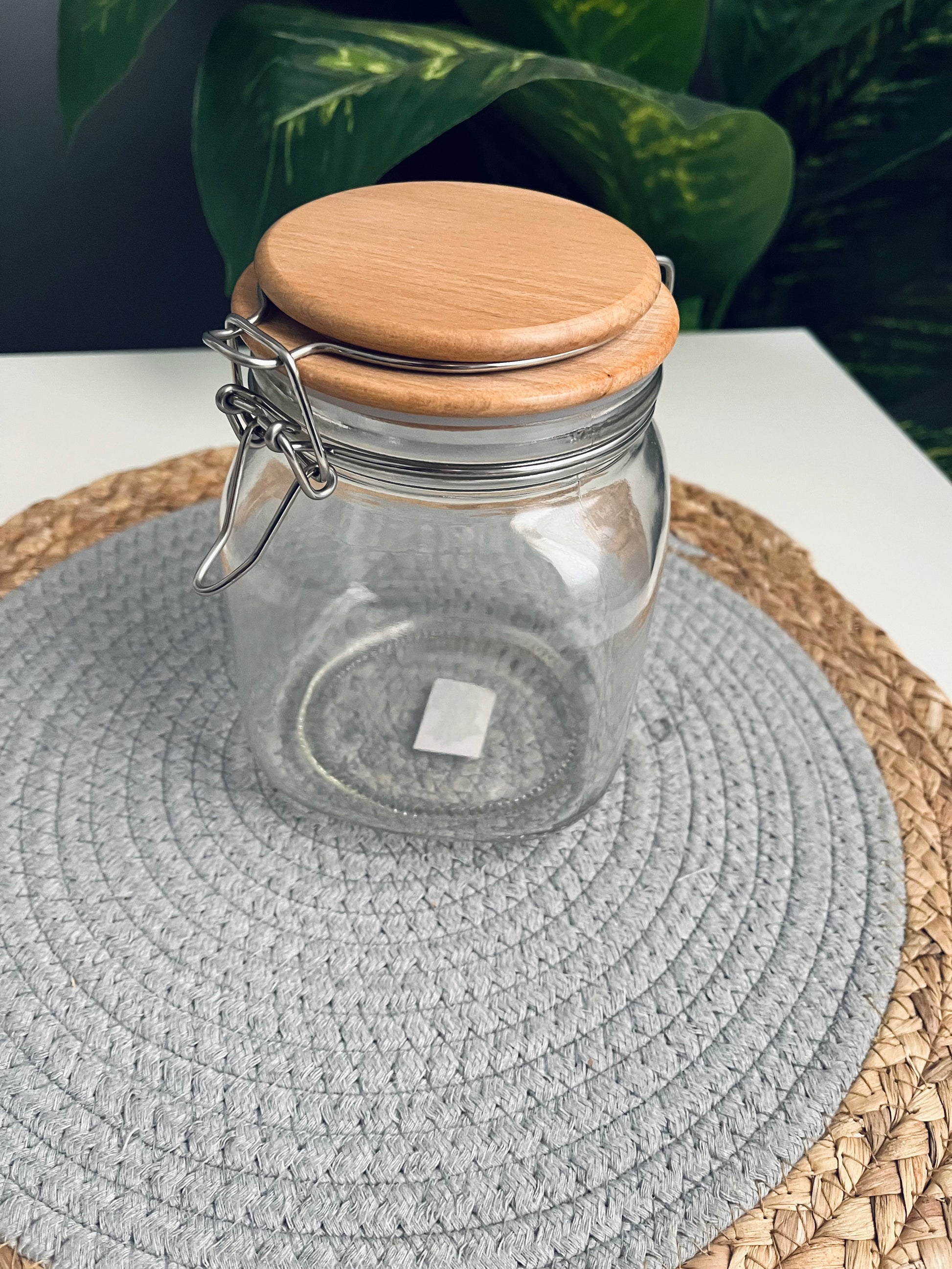 Glass jar with wooden cover 750g (كلبس غطاء خشب)
